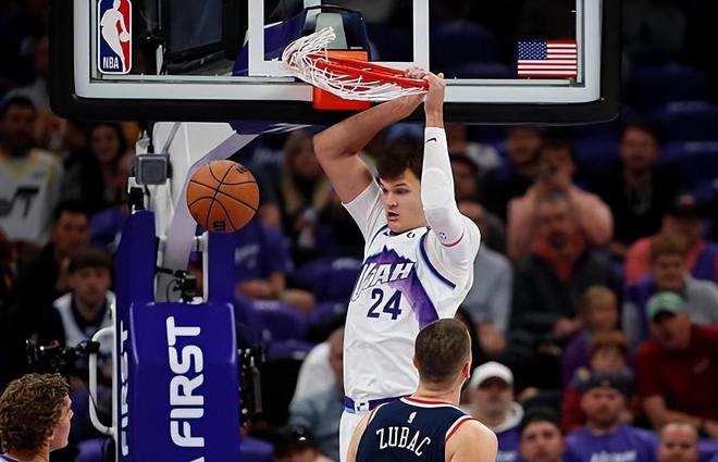从比赛首节,爵士就展现了极强的进攻火力,年轻球员凯斯勒和马尔卡宁联手打出高效进攻,迅速拉开比分。爵士首发阵容中的双塔组合——新秀菲利波夫斯基搭配凯斯勒,在内线形成了巨大优势。首节结束时,爵士以43-19领先,单节净胜24分,几乎为整场比赛定下了基调。快船则在开局阶段显得毫无准备,球员在场上缺乏活力,防守端漏洞百出。主教练泰伦卢沿用了上赛季的阵容配置,将凯琼斯放在三号位,伦纳德被迫客串四号位,而祖巴茨独自支撑内线。这种安排显然无法应对爵士的双塔体系。