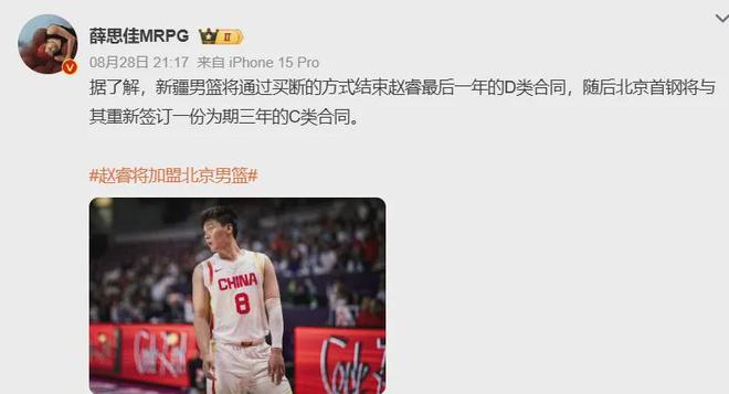 今夏休赛期,赵睿与新疆队达成D类顶薪买断协议,紧接着以三年C类合同加盟北京队,开启生涯新篇章。
